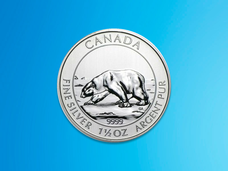 Серебряная инвестиционная монета Канады весом в 1,5 унции изготовлена из серебра 9999 пробы.
