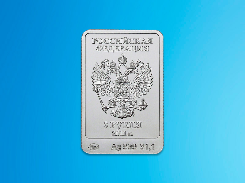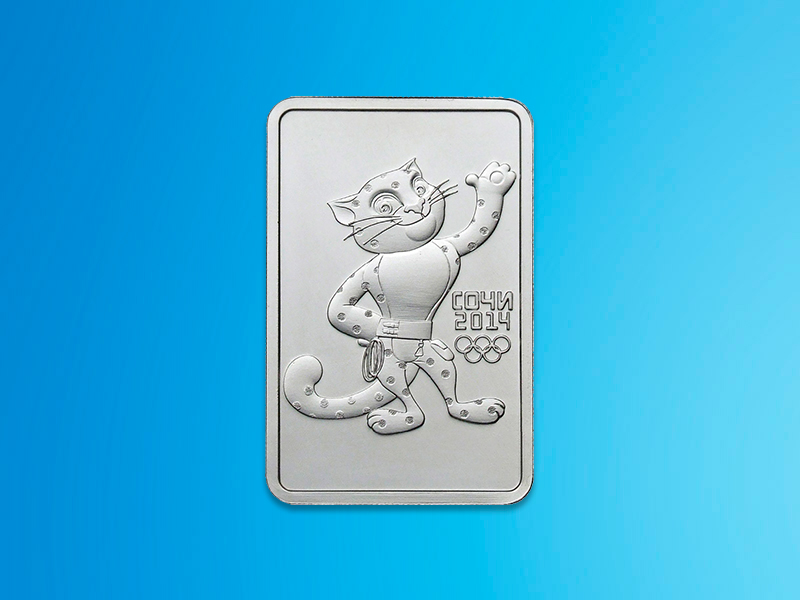 Серебряная инвестиционная монета «Леопард» номиналом 3 рубля выпущена в связи с Олимпийскими играми в Сочи в 2014 году. Она имеет нетипичную для российских монет прямоугольную форму.