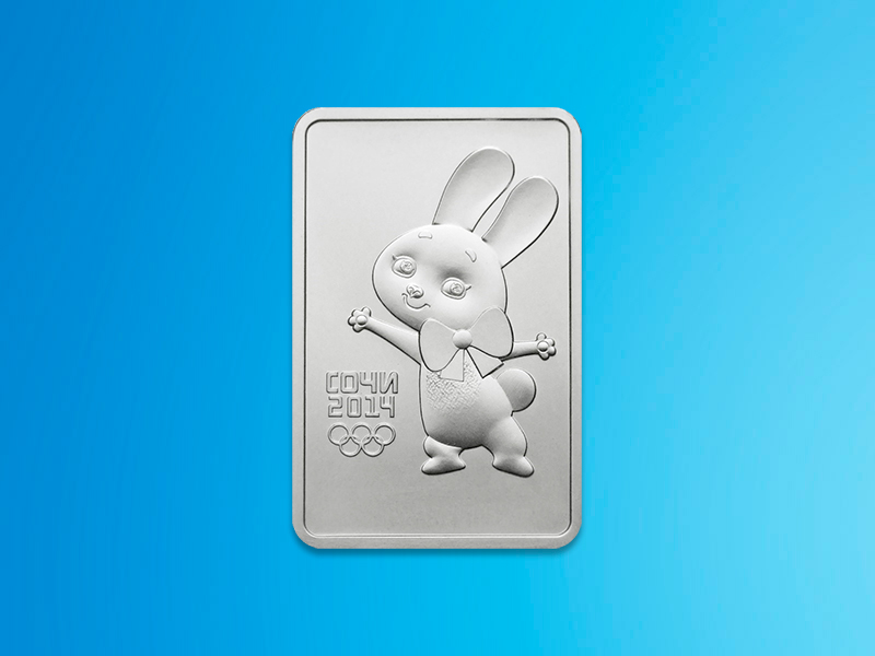 Серебряная монета 3 рубля Зайка серии «XXII Олимпийские зимние игры 2014 г. в Сочи» с изображением одного из талисманов Олимпийских игр в Сочи выпущена Банком РФ 3 декабря 2013 года. Монета прямоугольной формы с закругленными углами.